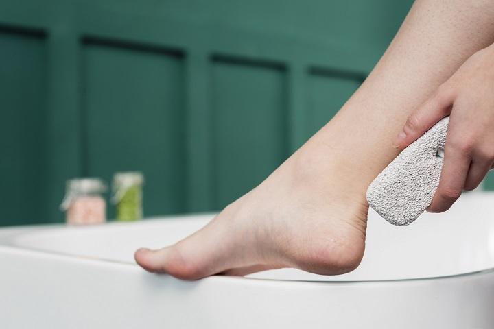 - Gunakan batu apung atau scrub kaki: Lakukan eksfoliasi seminggu sekali untuk menghaluskan kulit kasar.