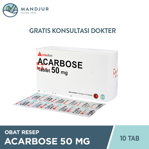 Harga yang tertera untuk 1 strip isi 10 tabletFARMAKOLOGIAcarbose adalah obat antidiabetik inhibitor?alpha-glucosidase. Acarbose tidak meningkatkan...