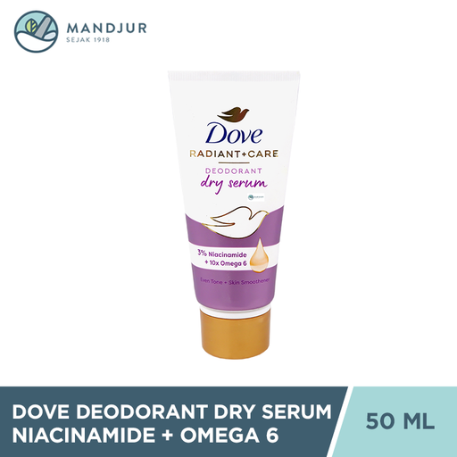 DoveDove Deodorant Dry Serum Radiant Care Niacinamide + Omega 6 merupakan serum ketiak yang diperkaya dengan 3% Niacinamide + 10x Omega 6 untuk membant...