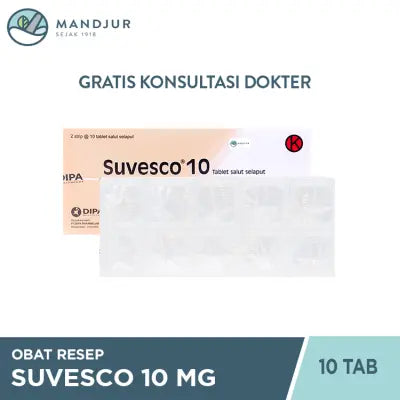 PT Dipa Pharmalab IntersainsHarga yang tertera untuk 1 strip isi 10 TabletSuvesco mengandung Rosuvastatin Kalsium yang digunakan untuk menurunkan kolestrol pada pasien dengan ...