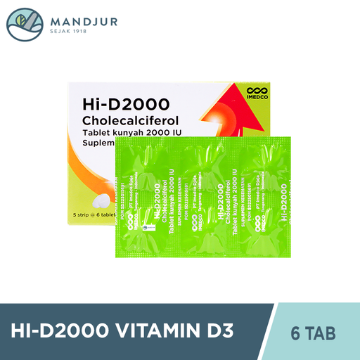 PT Imedco DjajaHarga yang tertera untuk 1 strip isi 6 tablet kunyahHi-D 5000 adalah Cholecalciferol atau nama lain dari Vitamin D3. Vitamin D membantu tubuh untuk...