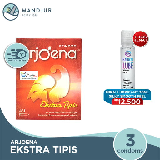 Kondom Arjoena adalah varian yang menggoda. Berguna untuk mencegah kehamilan dan penularan penyakit seksual, Kondom Arjoena merupakan kondom impor yang 100% lulus uji elektronis dan memenuhi standar mutu internasional tertinggi (ISO 4074) untuk menjamin perlindungan maksimal.