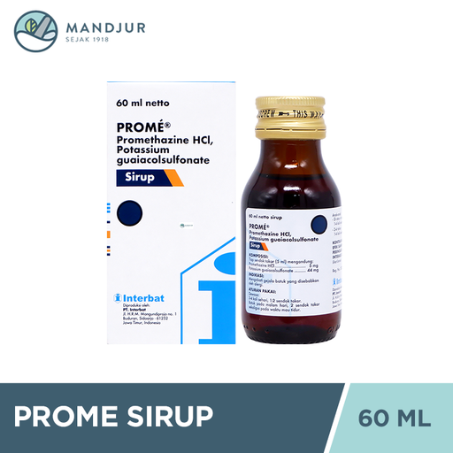 Prome merupakan obat yang digunakan untuk meringankan gejala batuk karena alergi yang disertai dengan batuk berdahak.Komposisi :Tiap sendok takar (...