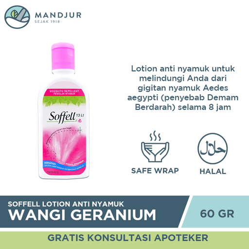 SoffellSoffell Lotion merupakan lotion penolak nyamuk dengan wangi bunga geranium yang dapat melindungi anda dari gigitan nyamuk Aedes aegypti (penyebab d...