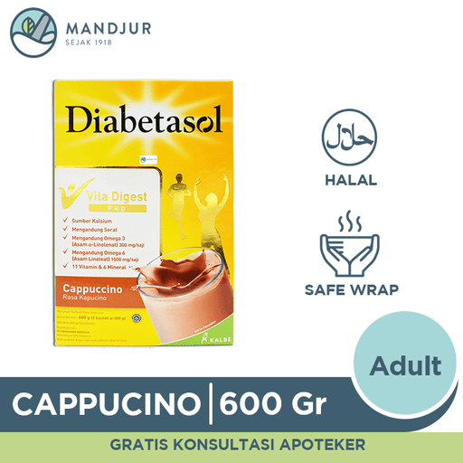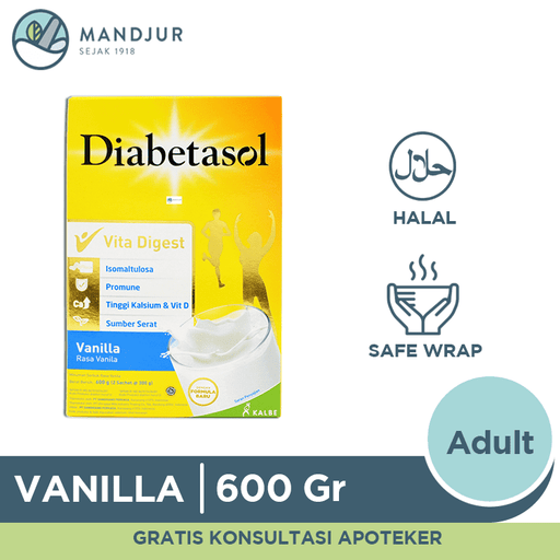 Susu Diabetasol adalah produk susu yang dirancang khusus untuk membantu mengontrol kadar gula darah pada penderita diabetes. Susu ini mengandung komponen-komponen nutrisi yang dikembangkan secara khusus untuk memberikan manfaat tambahan bagi penderita diabetes. Dengan kandungan serat yang tinggi, Susu Diabetasol membantu mengendalikan penyerapan glukosa dalam tubuh, sehingga mampu menjaga stabilitas gula darah. Selain itu, Susu Diabetasol juga kaya akan protein, vitamin, dan mineral penting lainnya yang mendukung kesehatan secara menyeluruh. Dengan mengonsumsi Susu Diabetasol sebagai bagian dari pola makan yang seimbang dan gaya hidup yang sehat, penderita diabetes dapat menjaga kadar gula darah tetap stabil sambil tetap memenuhi kebutuhan nutrisi harian mereka.
