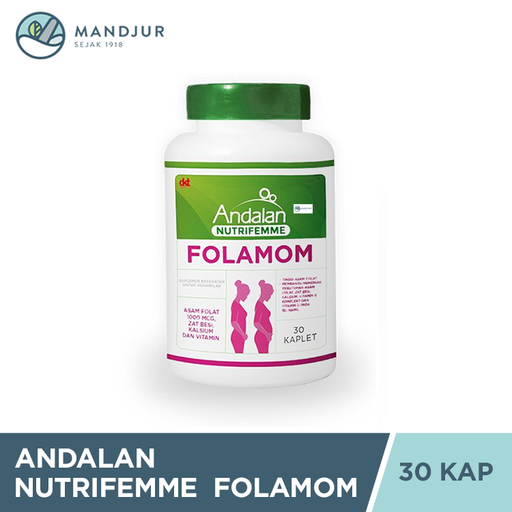 AndalanAndalan Nutrifemme Folamom merupakan suplemen yang dapat membantu memenuhi kebutuhan asam folat 1000 mcg, 50 mg zat besi, vitamin D, Kalsium dan vi...