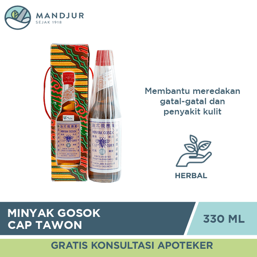 Cap TawonMinyak Gosok Cap Tawon merupakan minyak gosok yang membantu meredakan nyeri sendi, sakit gigi, bisul, sakit kapala, kudis, panu, gatal-gatal akibat...