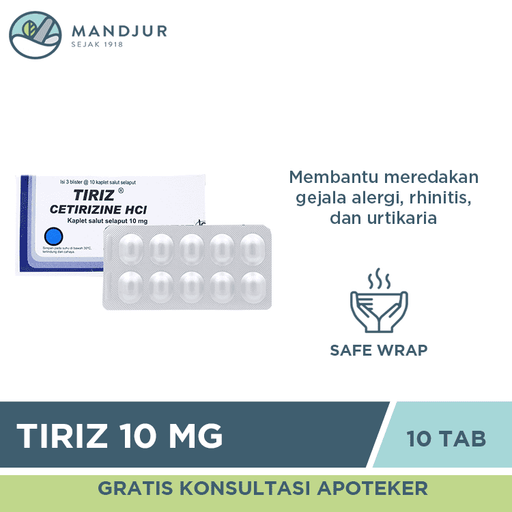 PT. LAPI LABORATORIESTiriz 10 mg adalah obat yang dirancang khusus untuk mengatasi gejala rhinitis alergi dan gatal-gatal akibat alergi. Setiap tablet mengandung 10 mg ...