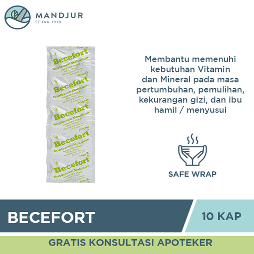 BecefortBecefort merupakan suplemen makanan yang mengandung kombinasi Vitamin C, Vitamin B kompleks, Vitamin E, Nicotinamide, dan Kalsium Pantotenat yang b...