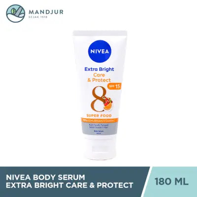 Apotek MandjurNivea Extra Bright Care & Protect 8 Super Food SPF15 Body Serum 180 ml merupakan body serum dengan tekstur ringan, tidak lengket, mengandung 95...