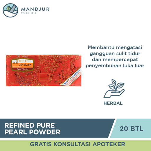 Intra AriesRefined Pure Pearl Powder (Zhen Zhu Fen) merupakan obat herbal yang secara tradisonal digunakan untuk membantu meringankan gangguan sulit tidur dan...