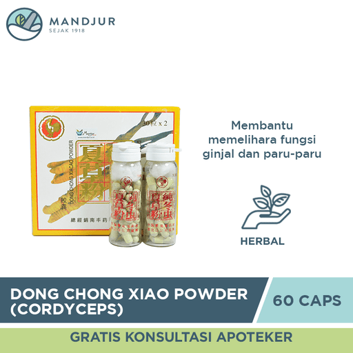 Citra Deli KreasitamaDongchong Xiacao (Cordyceps) adalah suplemen herbal yang secara tradisonal digunakan untuk membantu memelihara daya tahan tubuh. INFORMASI PADA KEM...