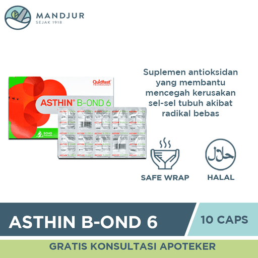 PT SOHO Industri PharmasiAsthin B-OND 6 merupakan suplemen makanan yang berfungsi untuk membantu memelihara kesehatan tubuh khususnya untuk orang dengan resiko tinggi terpa...