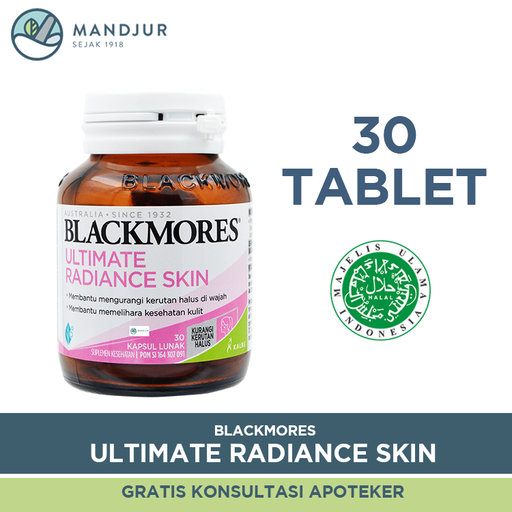 BlackmoresBlackmores Ultimate Radiance Skin merupakan suplemen kesehatan kulit yang mengandung kombinasi 10 bahan nutrisi kulit seperti kolagen, CoQ10 dan an...