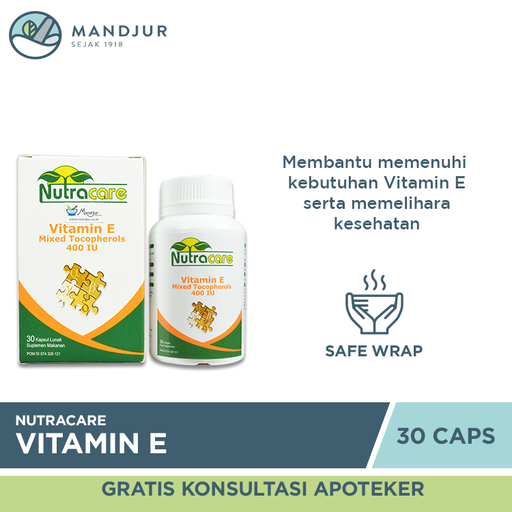 NutracareNutracare Vitamin E Mixed Tocopherols 400 lU merupakan antioksidan alami yang umumnya ditemukan di dalam minyak nabati. Terakhir diperbaharui: 10 M...