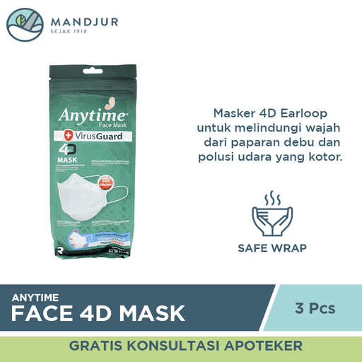 Anytime Face MaskAnytime Face Mask merupakan masker medis yang berfungsi untuk melindungi wajah dan saluran pernapasan dari paparan?debu dan polusi udara yang tidak...