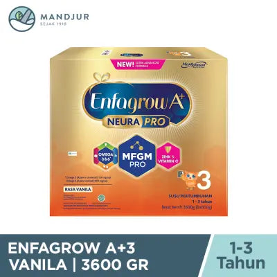 ENFAGROWEnfagrow A+ 3 merupakan susu pertumbuhan yang diformulasikan khusus untuk anak usia 1 - 3 tahun, atau anak-anak yang sudah memasuki masa Golden Age...