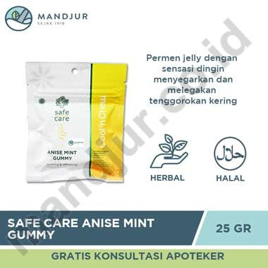 Safe CareSafe Care Cool n Chew Anise Mint Gummy merupakan permen jelly empuk dengan rasa mint dan adas untuk membantu menyegarkan mulut dan tenggorokan. Kha...