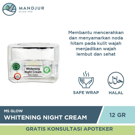 MS GlowMS Glow Whitening Night Cream merupakan krim wajah khusus malam hari dengan formula inovatif yang membantu mencerahkan wajah dan juga menyemarkan n...