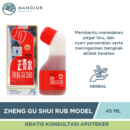 Zheng Gu Shui (Rub Model) merupakan obat gosok / urut yang digunakan untuk membantu meredakan pegal linu dan nyeri persendian, serta meringankan be...
