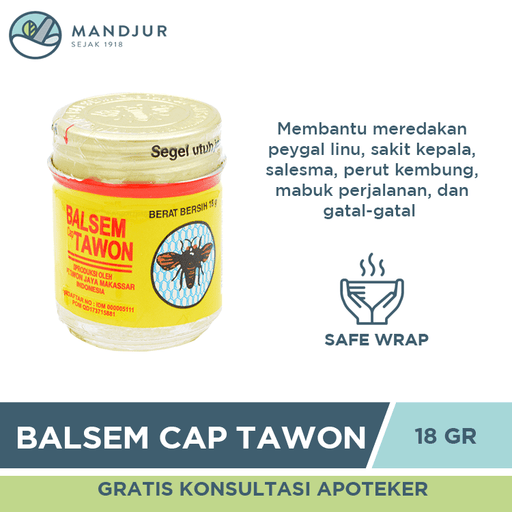 Balsem Cap Tawon mengandung menthol,?camphora, oleum lawang, oleum cajuputi, dan oleum citronellae yang mampu meredakan pegal linu, sakit kepala, s...