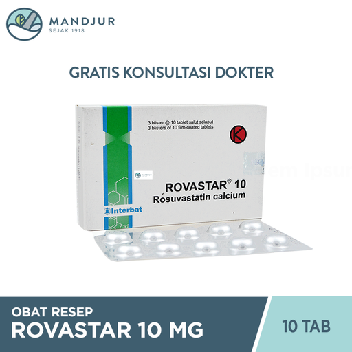 InterbatHarga yang tertera untuk 1 blister isi 10 tablet salut selaput FARMAKOLOGIRovastar (Rosuvastatin) adalah penghambat yang selektif dan kompetitif te...