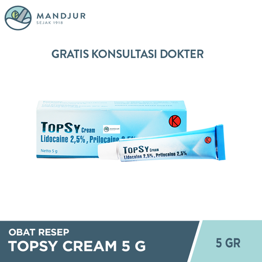 PT Galenium Pharmasia LaboratoriesFARMAKOLOGI Topsy cream dioleskan pada kulit normal, mekanisme sebagai dermal analgesia dimulai dengan cara pelepasan lidocaine dan prilocaine dari...