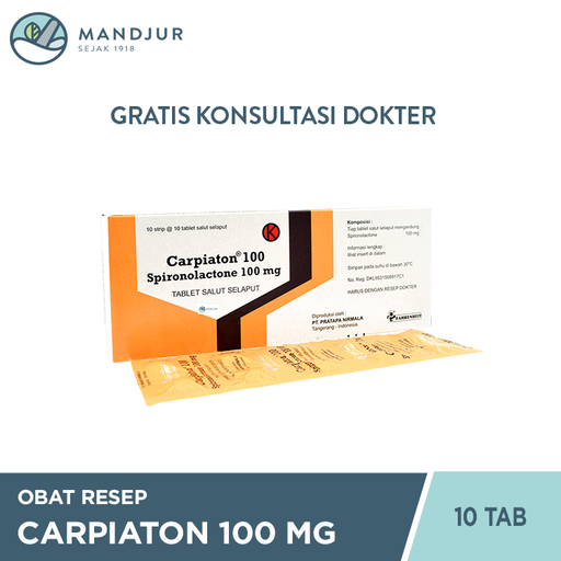 PT. PRATAPA NIRMALAHarga yang tertera untuk 1 strip isi 10 tabletCarpiaton (Spironolactone 100 mg) merupakan antagonis aldosteron. Bekerja secara kompetitif dengan al...