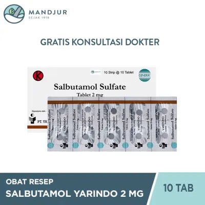 PT. YARINDO FARMATAMAHARGA YANG TERTERA UNTUK 1 STRIP ISI 10 TABLETPenggunaan obat ini HARUS DENGAN RESEP DOKTER.FARMAKOLOGISalbutamol sulfate merupakan suatu senyawa y...