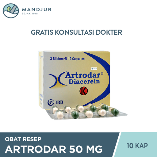 TRB PharmaHarga yang tertera untuk 1 strip isi 10 kapsulARTRODAR 50 MG mengandung Diaceren yang berfungsi menghilangkan gejala pada pengobatan jangka panjang...