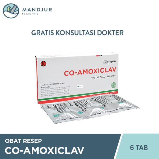 PT. MeprofarmKEMASAN / NAMA PABRIK PEMBUAT DAPAT BERUBAH SESUAI DENGAN KETERSEDIAAN STOK APOTEKHarga yang tertera untuk 1 strip isi 6 tabletCO AMOXICLAV 625 MG ...