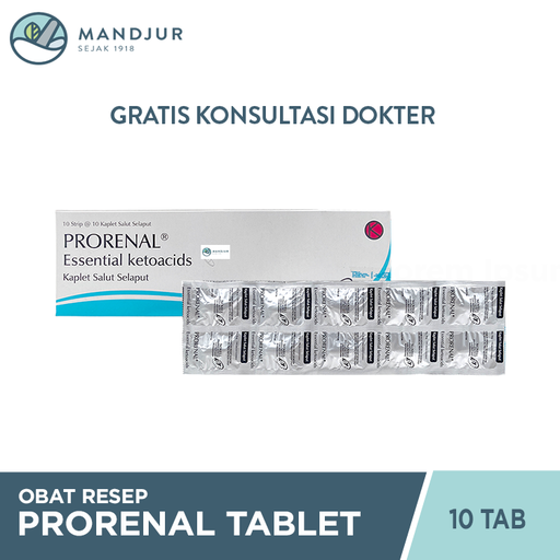 Novell PharmaceuticalHarga yang tertera untuk 1 strip isi 10 kaplet salut selaput FARMAKOLOGI Analog keto: Prorenal mengandung asam amino esensial sebagai berikut: Lisi...
