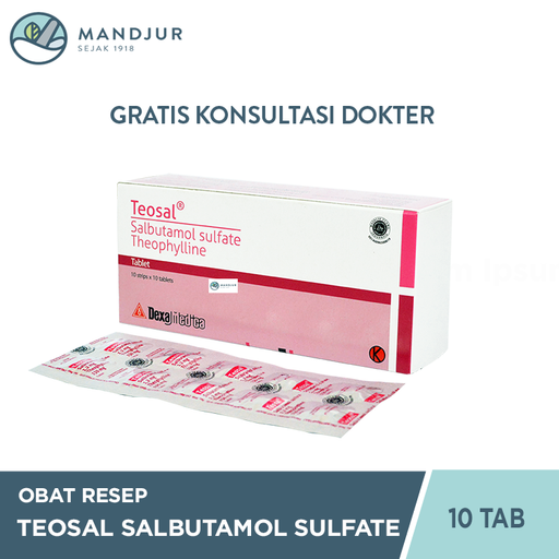 PT Dexa MedicaFARMAKOLOGI Teosal tablet adalah obat yang digunakan untuk melegakan pernafasan pada penderita asma dan bronkitis kronis. Teosal mengandung salbuta...