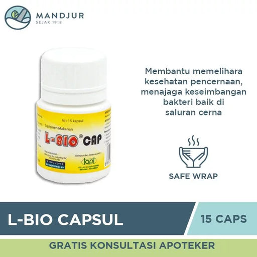 PT Lapi LaborariesHARGA YANG TERTERA UNTUK 1 BOTOL 15 KAPSUL L-Bio merupakan serbuk yang mengandung sejumlah bakteri baik (probiotik) yang bagus untuk memelihara kes...