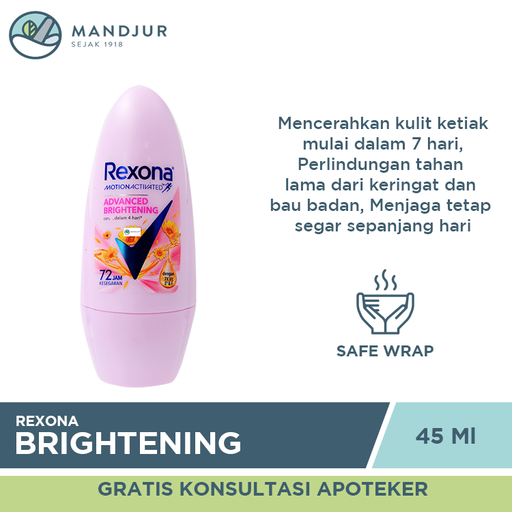 RexonaRexona Deodorant Advanced Brightening diformulasikan dengan kandungan minyak biji bunga matahari yang dapat membantu memulihkan dan mencerahkan war...