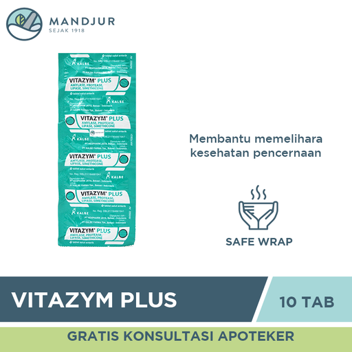 Vitazym Plus merupakan kombinasi zat-zat yang berguna untuk membantu proses pencernaan, yang tersusun atas amylase, protease, lipase, dan simethico...