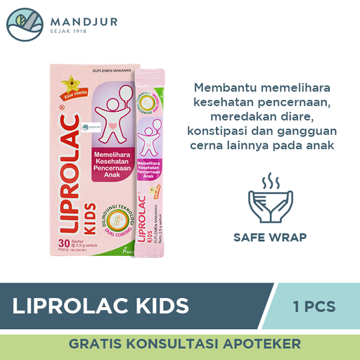LIPROLAC merupakan suplemen kesehatan pencernaan yang mengandung kombinasi dari 5 jenis spesies probiotik hidup dan FOS (fruktooligosakarida) sebag...