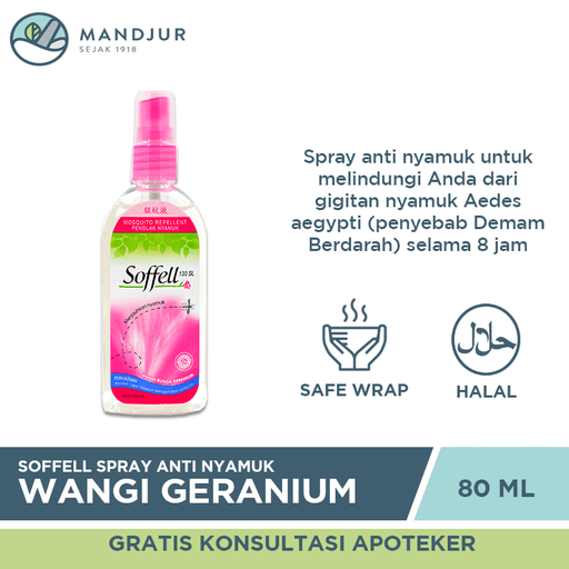 SoffellSoffell Spray merupakan larutan cairan anti nyamuk dengan wangi bunga geranium yang dapat melindungi anda dari gigitan nyamuk Aedes aegypti (penyeb...