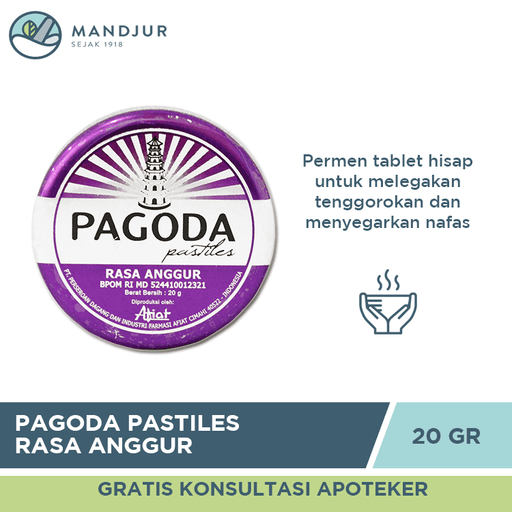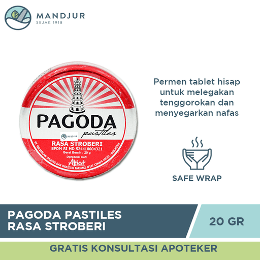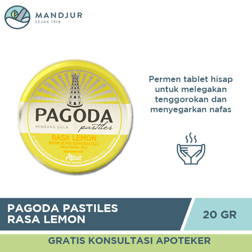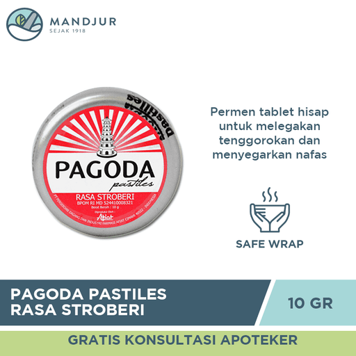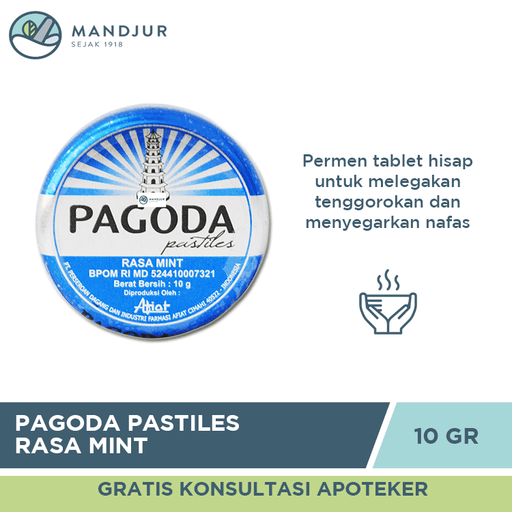 Pagoda Pastiles merupakan permen tablet hisap yang berfungsi untuk membantu memberi sensasi melegakan tenggorokan dan mengharumkan nafas. Oleh kare...