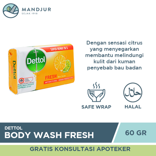 View full detailsSabun Mandi Batang Dettol Profresh Fresh - 60 gram