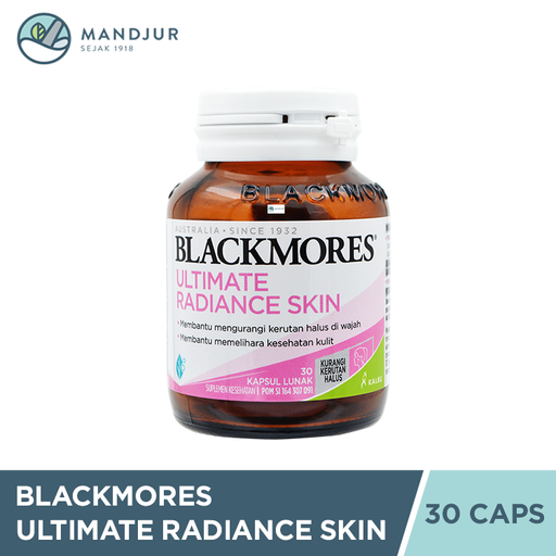 BlackmoresBlackmores Ultimate Radiance Skin merupakan suplemen kesehatan kulit yang mengandung kombinasi 10 bahan nutrisi kulit seperti kolagen, CoQ10 dan an...