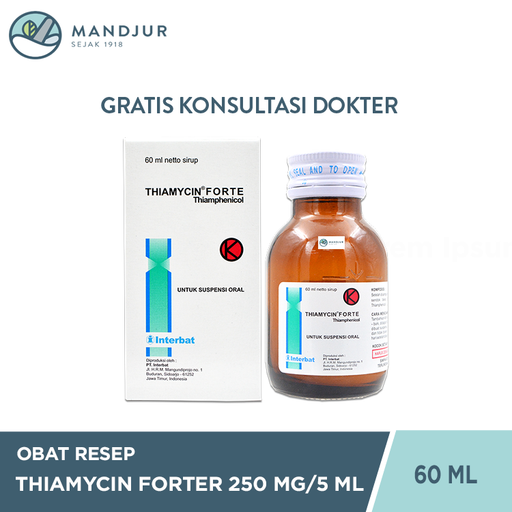 InterbatHarga yang tertera untuk 1 strip isi 10 kapsul FARMAKOLOGI Thiamycin (Thiamphenicol 1000 mg) adalah antibiotik untuk pengobatan infeksi yang diseba...