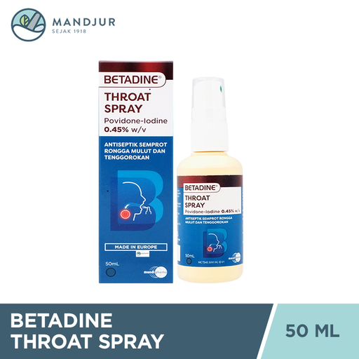 BetadineBetadine Throat Spray mengandung Povidone Iodine yang merupakan zat aktif antiseptik untuk membantu membersihkan rongga mulut seperti gusi bengak, ...