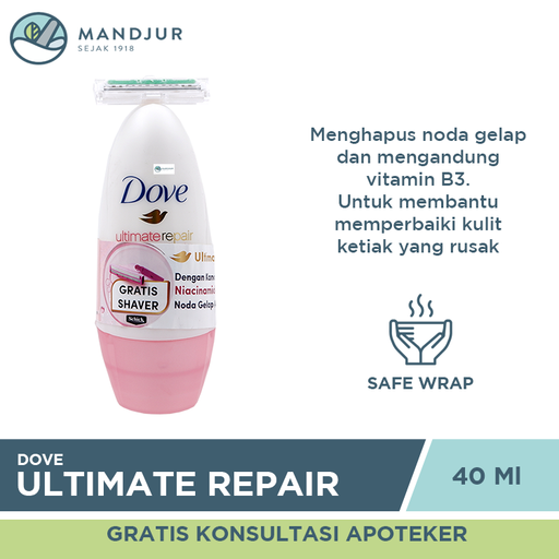 DoveDove Deodorant Roll On Ultimate Repair diformulasikan dengan kandungan moisturizing cream dan vitamin B3 yang dapat membantu memperbaiki kulit ket...