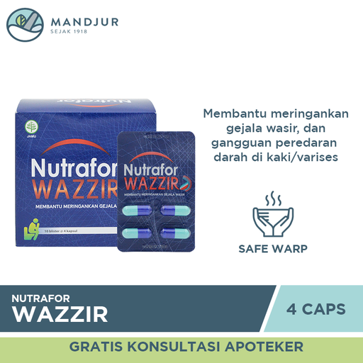 NutraforNutrafor Wazzir merupakan obat herbal yang diformulasikan untuk membantu meringankan gejala wasir seperti gatal, rasa panas, bengkak, nyeri, dan pe...