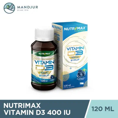 NutrimaxNutrimax Vitamin D3 400 IU 120 ml merupakan suplemen kesehatan berbentuk sirup Vitamin D3 dengan dosis yang aman sesuai rekomendasi BPOM, menggunak...