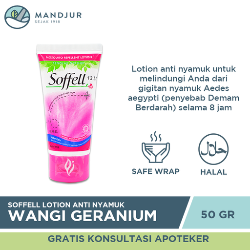 SoffellSoffell Lotion merupakan lotion penolak nyamuk dengan wangi bunga geranium yang dapat melindungi anda dari gigitan nyamuk Aedes aegypti (penyebab d...