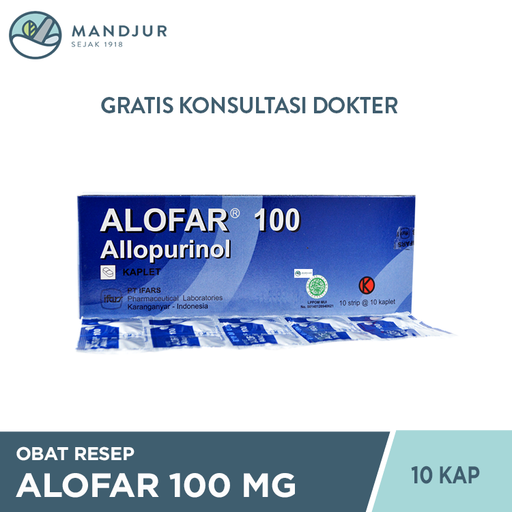 Harga yang tertera untuk 1 strip isi 10 kapletFARMAKOLOGIAlofar (Allopurinol 100 mg) dan metabolitnya Oxipurinol (Alloxanthine) dapat menurunkan pr...