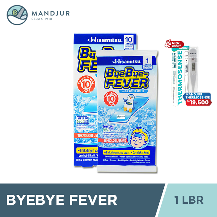 ByeBye FEVER anak merupakan plester kompres demam yang di produksi oleh PT Hisamitsu Pharma Indonesia. Produk ini sangat bermanfaat untuk mengatasi rasa sakit karena demam, sakit kepala, sakit gigi, dan menurunkan panas. Produk ini dapat digunakan pada anak berusia 2 tahun ke atas karena produk ini lembut untuk kulit anak, memiliki daya lekat yang kuat, rasa dingin yang tahan hingga 10 jam, dan sangat aman digunakan bersama obat lain.