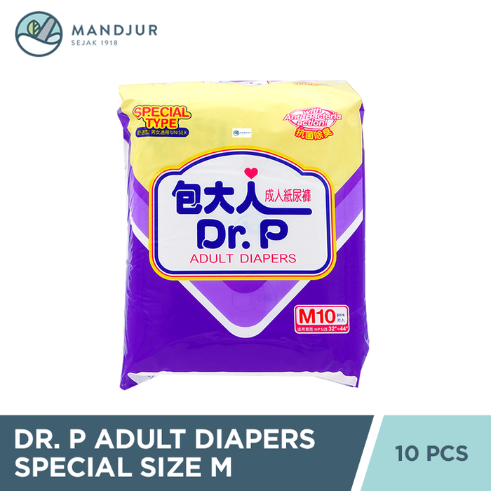 Dr. P Adult Diapers Special merupakan diapers dewasa yang didesain untuk penggunaan orang dewasa. Dapat digunakan untuk pasien dengan gangguan BAB seperti diare. Didesain lembut serta nyaman saat dipakai. Dengan fungsi anti kuman yang membantu mencegah pertumbuhan kuman berbahaya yang dapat mengakibatkan ruam dan menetralkan bau tidak sedap dengan segera. Memiliki desain O channel untuk mengalirkan cairan sehingga dapat merembes dengan cepat. Memiliki petunjuk kelembaban yang dengan sekilas dapat mengetahui apakah popok perlu diganti atau tidak. Tersedia dalam size M dan L.